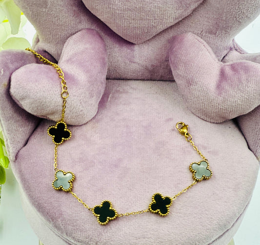 Gold Plated Black Clover Bracelet