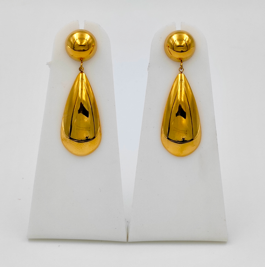 Ball Drop Stainless Steel Gold Plated Statement Earrings