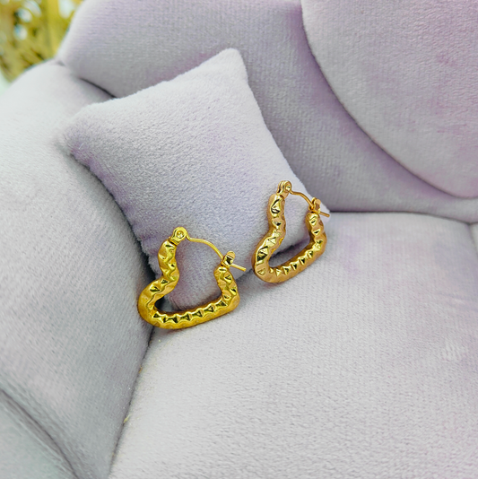 Gold Plated Embossed Hollowing Heart Hoops Earrings
