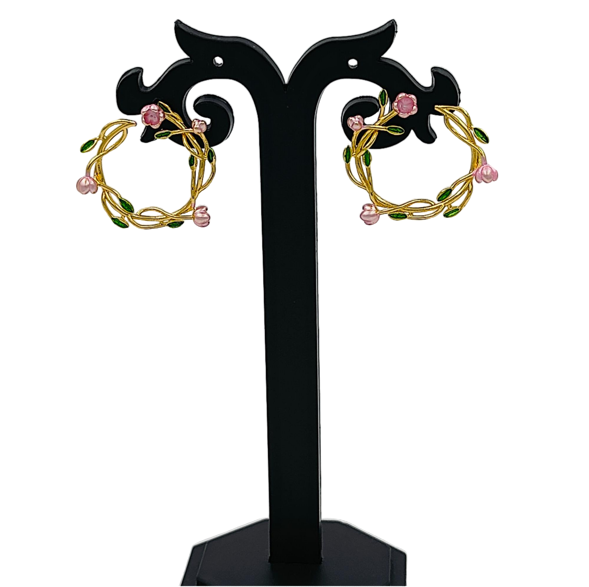 These floral hoop earrings combine a delicate flower motif with a bold hoop design. Their feminine charm makes them perfect for day-to-night transitions.