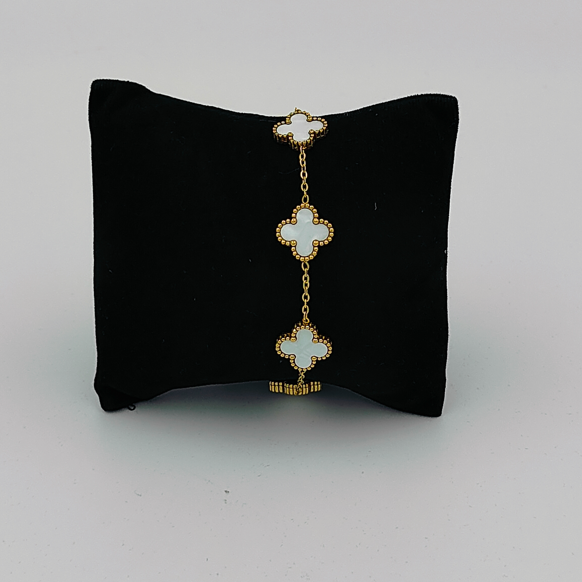 This elegant bracelet features a white clover design, symbolizing good luck. The gold-plated finish adds a touch of sophistication, making it a versatile accessory for both casual and formal occasions. Made with high-quality materials our jewelry is designed to stand the test of time. This product is created with exceptional craftsmanship and attention to detail. It is versatile enough to complement any outfit, perfect for both everyday wear and special occasions.