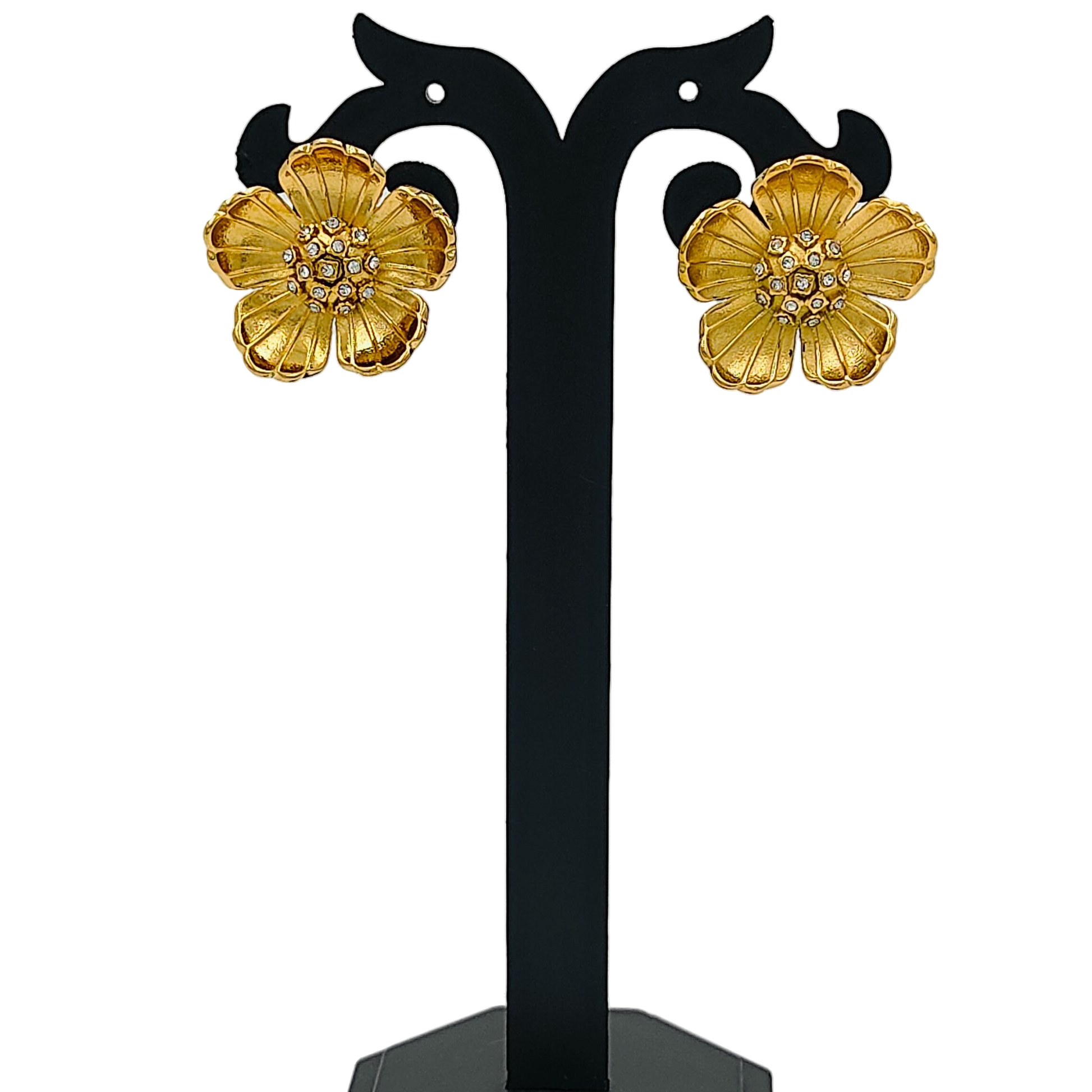 These floral studs feature a golden finish with sparkling American diamond tops. Their intricate design makes them perfect for special occasions.