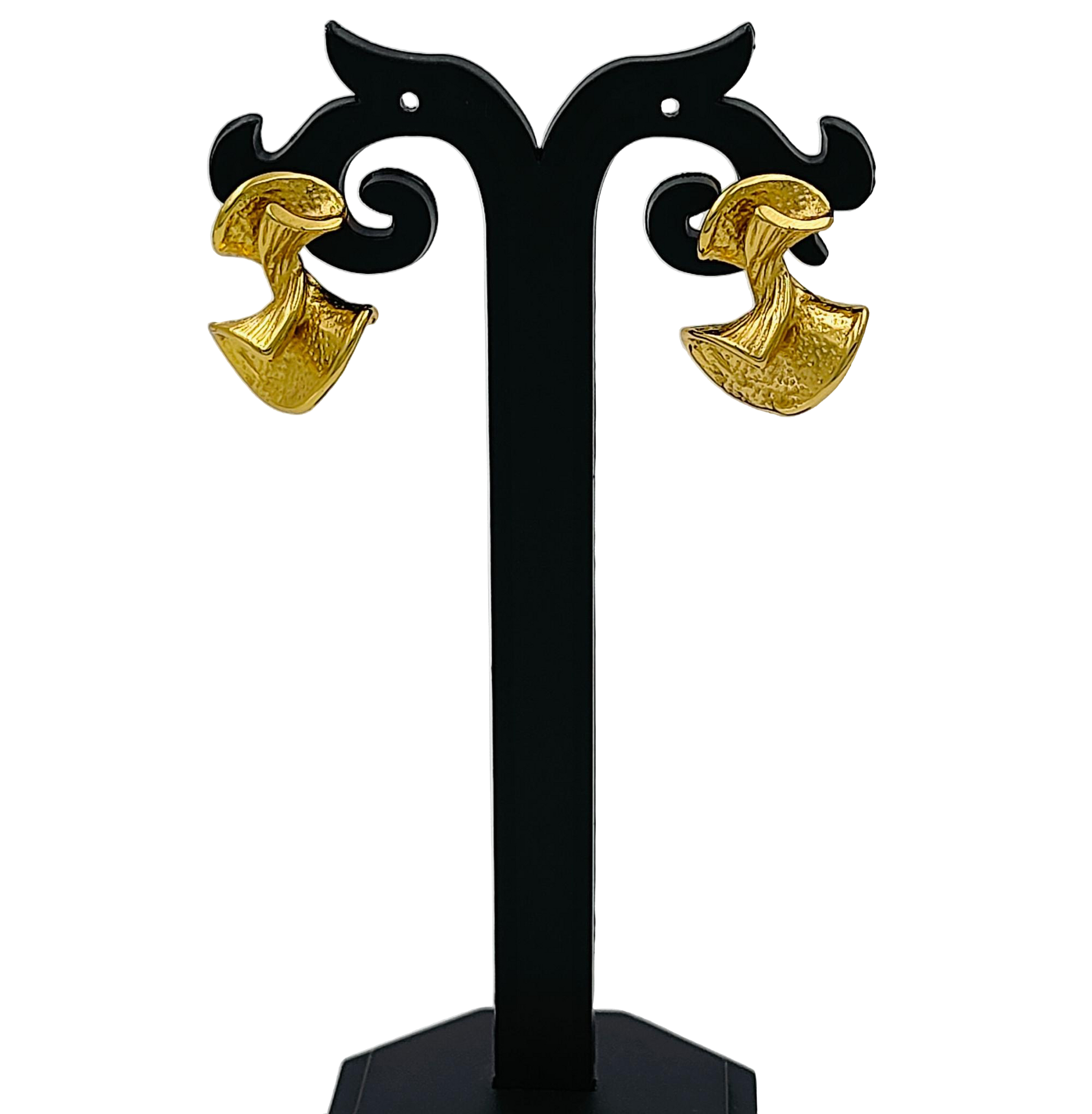 These twisted stainless steel earrings feature a golden finish for a sleek and modern aesthetic. Their unique design adds a bold statement to any outfit.