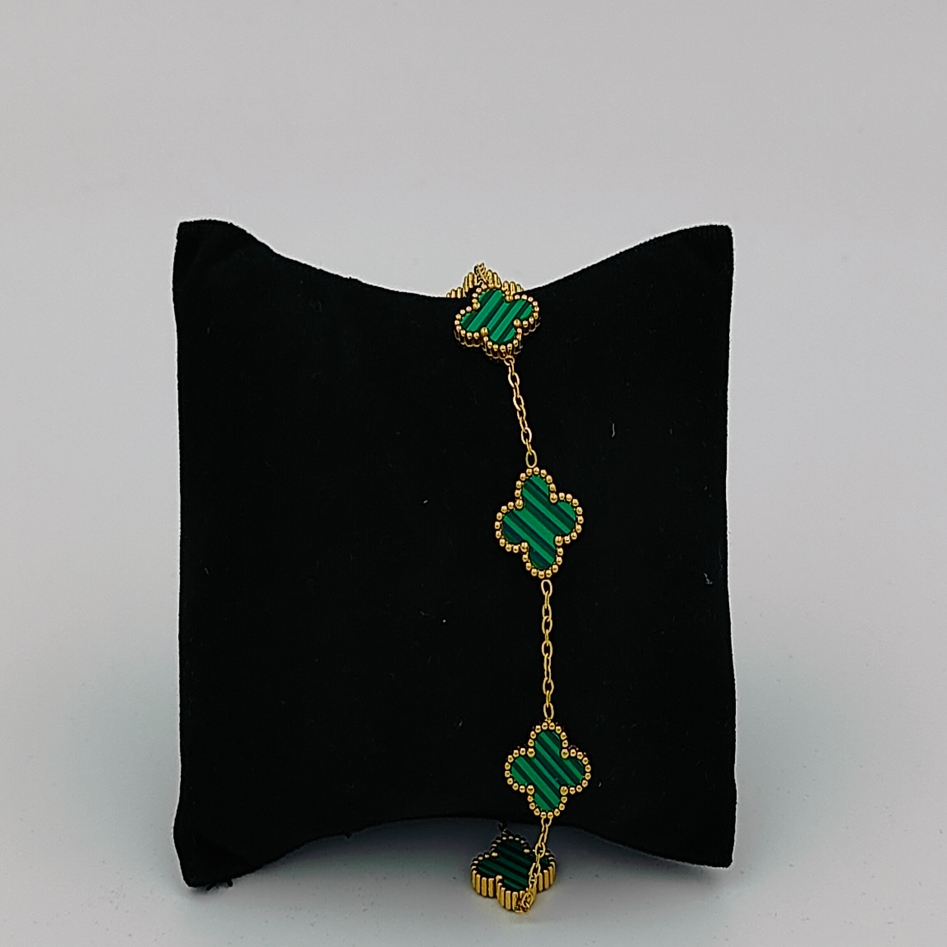 This stainless steel bracelet features a green clover charm, symbolizing good luck and prosperity. Its durable material and sleek design make it both stylish and long-lasting, perfect for daily wear.