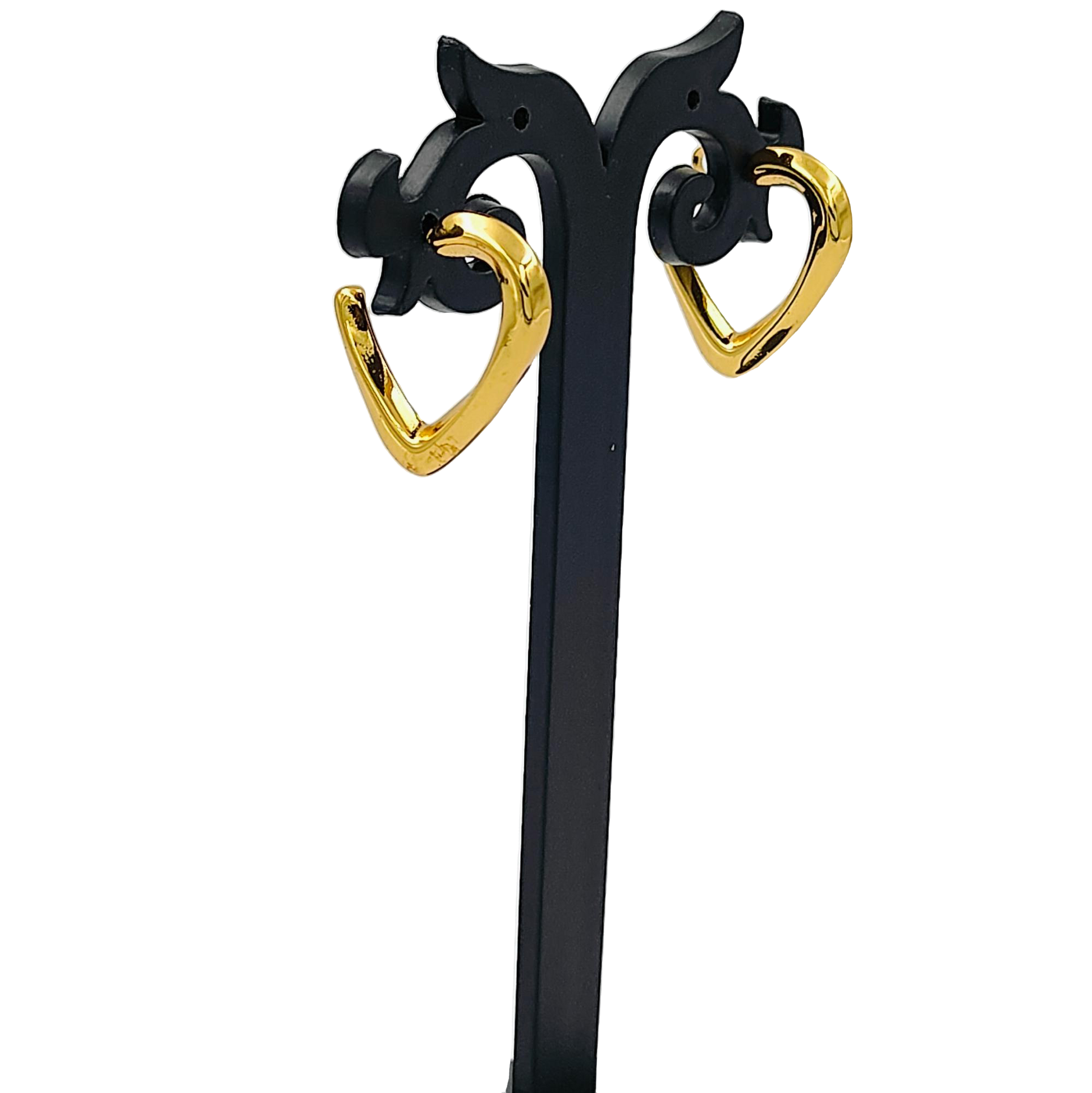 Make a romantic statement with these heart-shaped hoop earrings. Their bold design and shiny finish make them a standout accessory for any occasion.