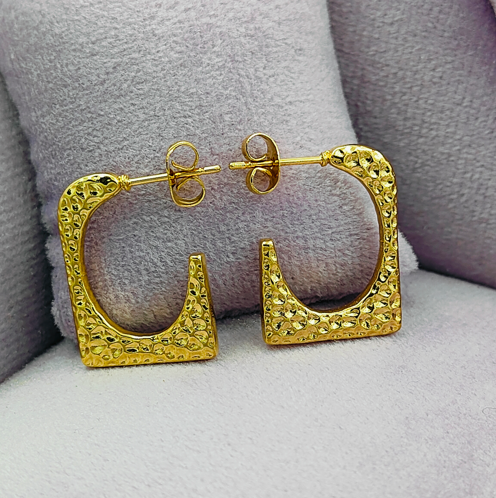 These open hoop earrings feature a hollow geometric design that’s both trendy and lightweight. Perfect for adding a modern edge to any outfit.