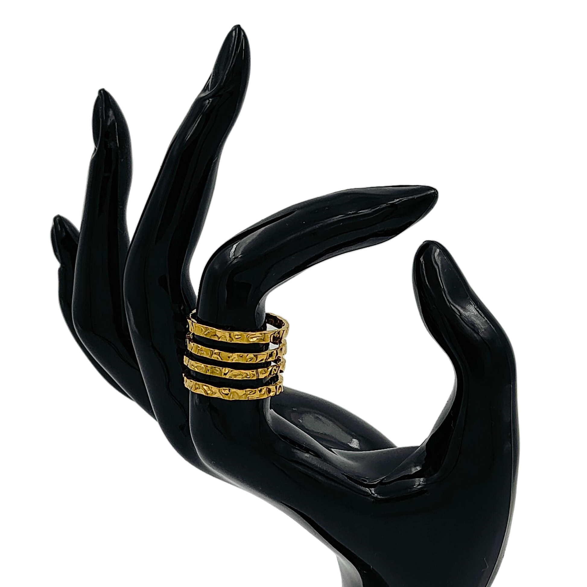 Make a bold statement with this multi-layer gold engraved finger cuff. The layered design, combined with fine engravings, exudes luxury and elevates any outfit effortlessly.