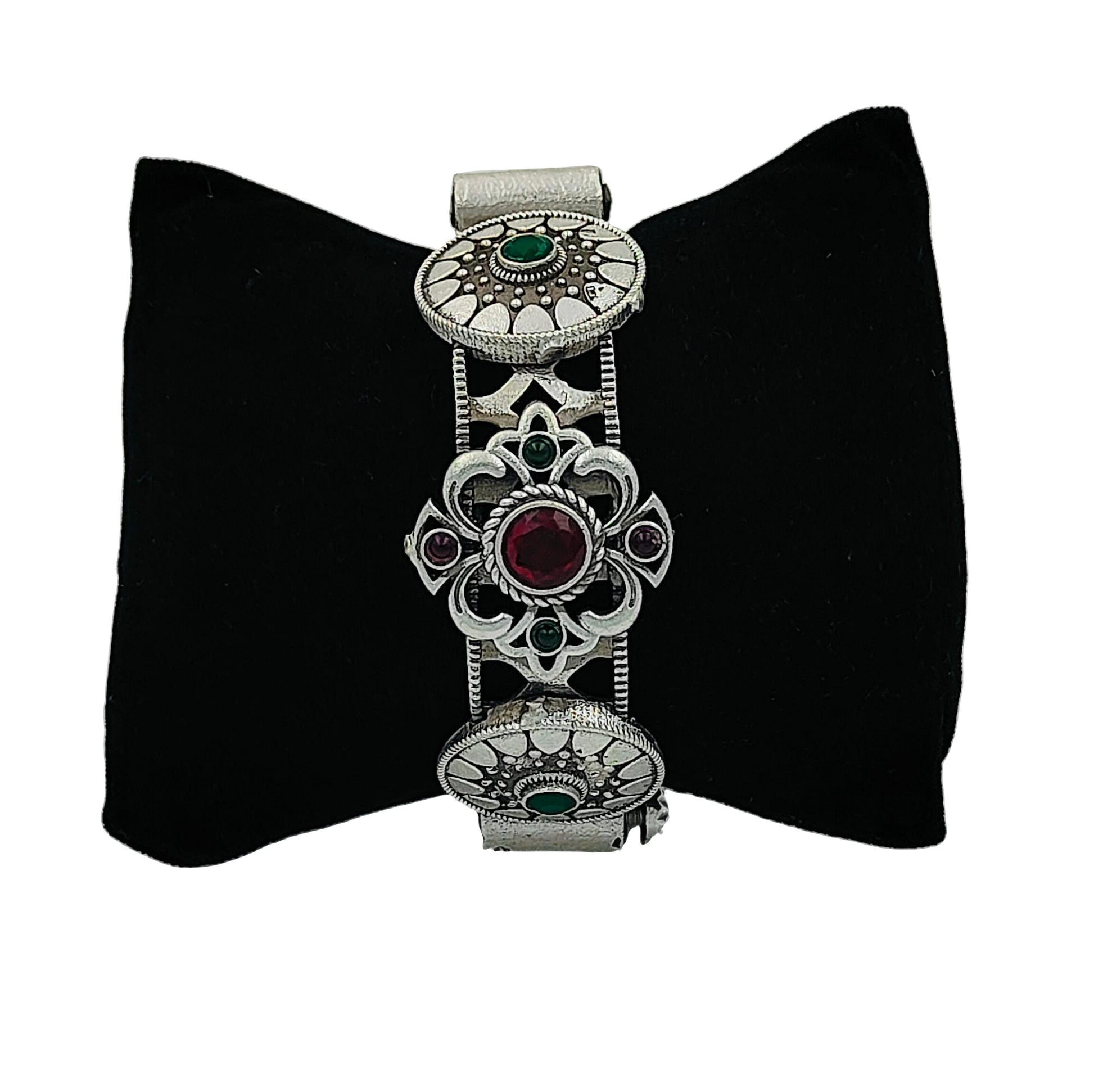 Featuring a round female stone design, this silver oxidized kada blends the elegance of stones with the bold charm of oxidized silver. The perfect fusion of traditional and modern styles, it’s an accessory that complements any outfit with ease.