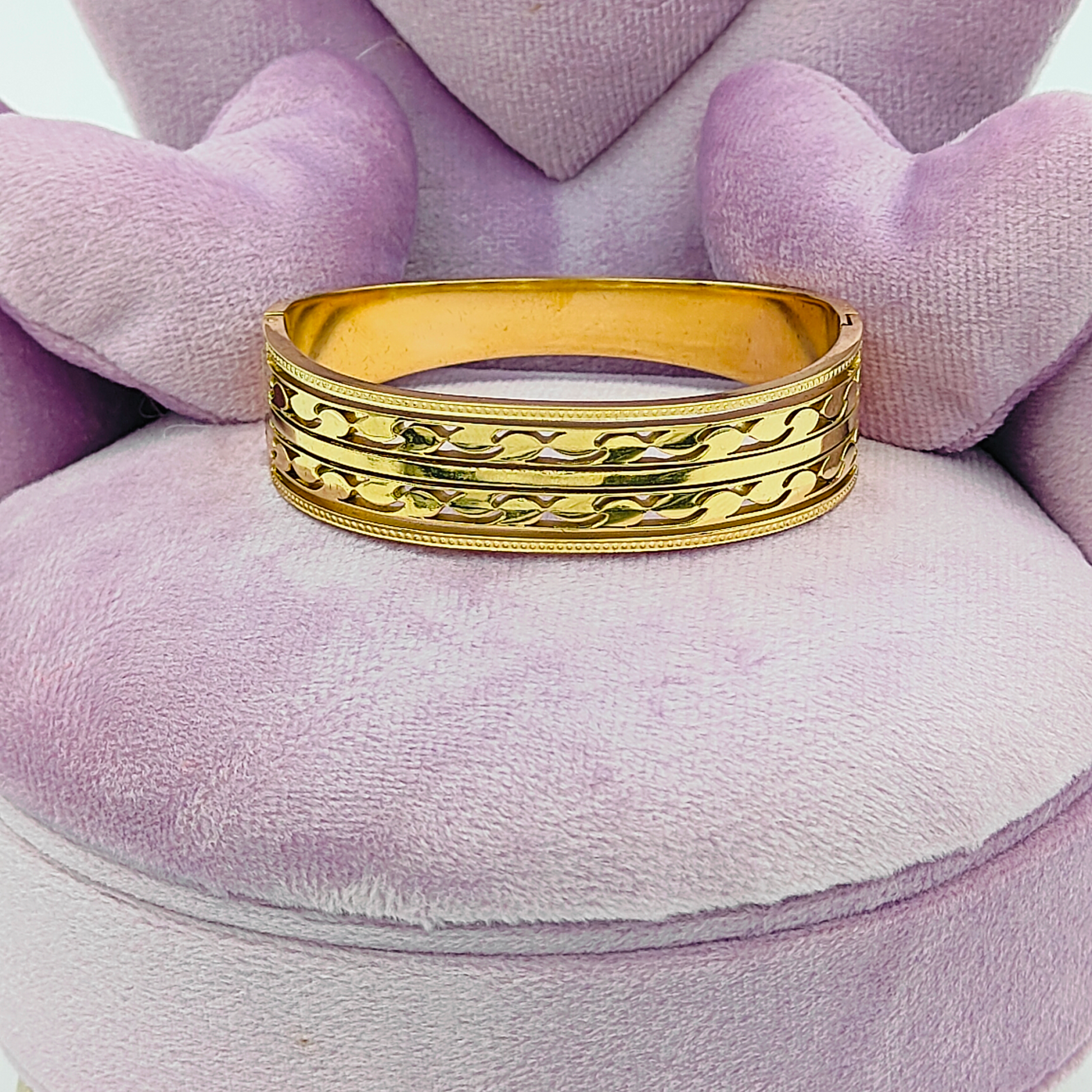 This timeless gold bracelet features an adjustable design, ensuring a perfect fit for any wrist size. Its classic gold finish makes it an elegant choice for any occasion, from casual wear to formal events.