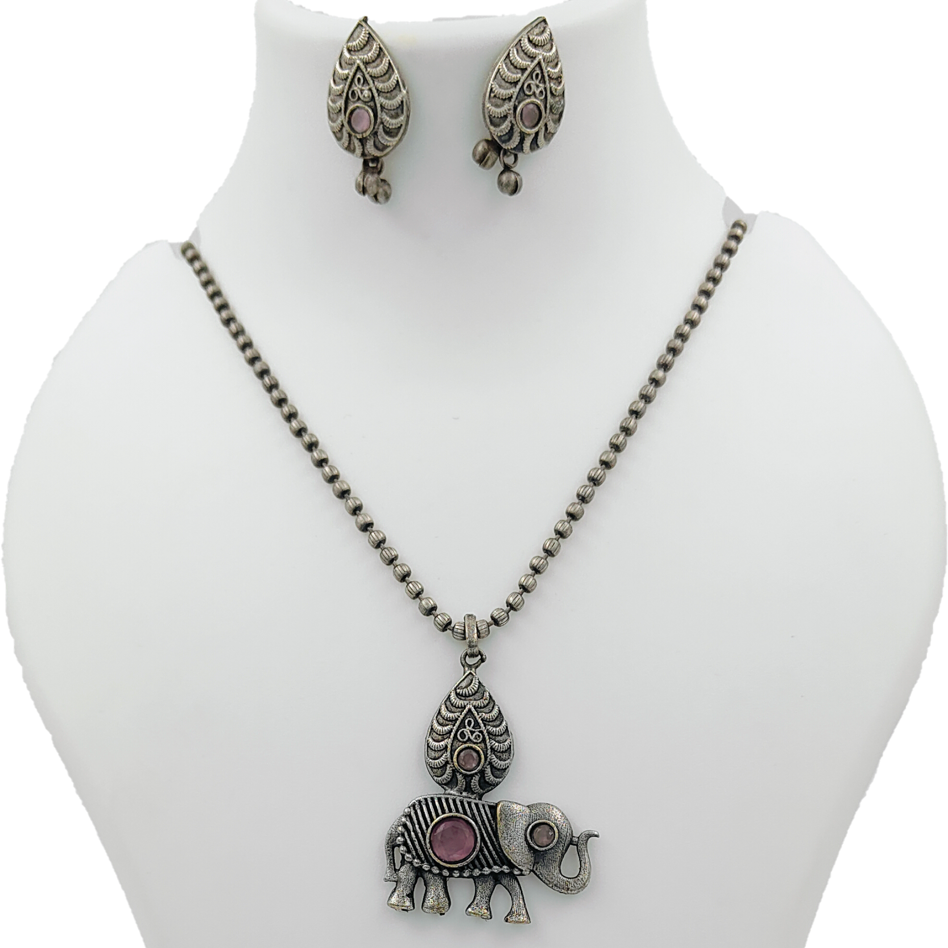Trending Elephant Pink Stone Silver Plated Jewellery Set