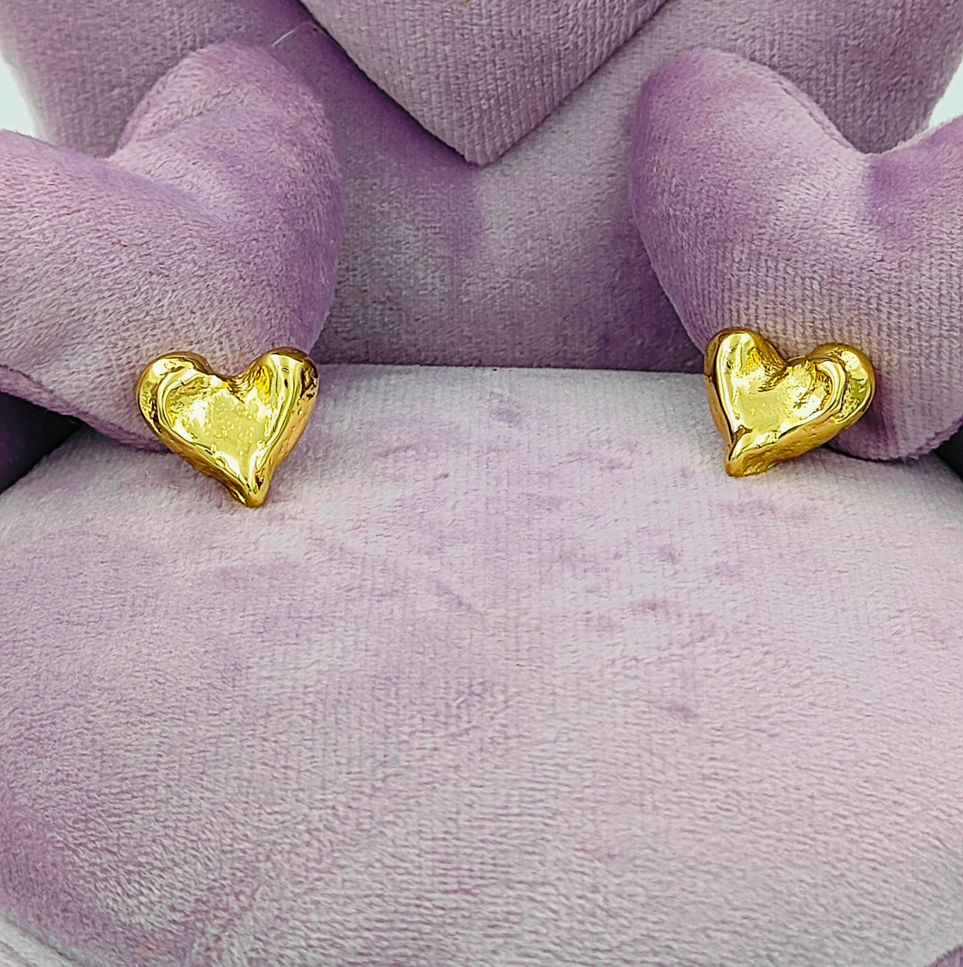 These minimalist earrings feature tiny heart designs in a gold-plated finish. Their understated elegance makes them perfect for daily wear.